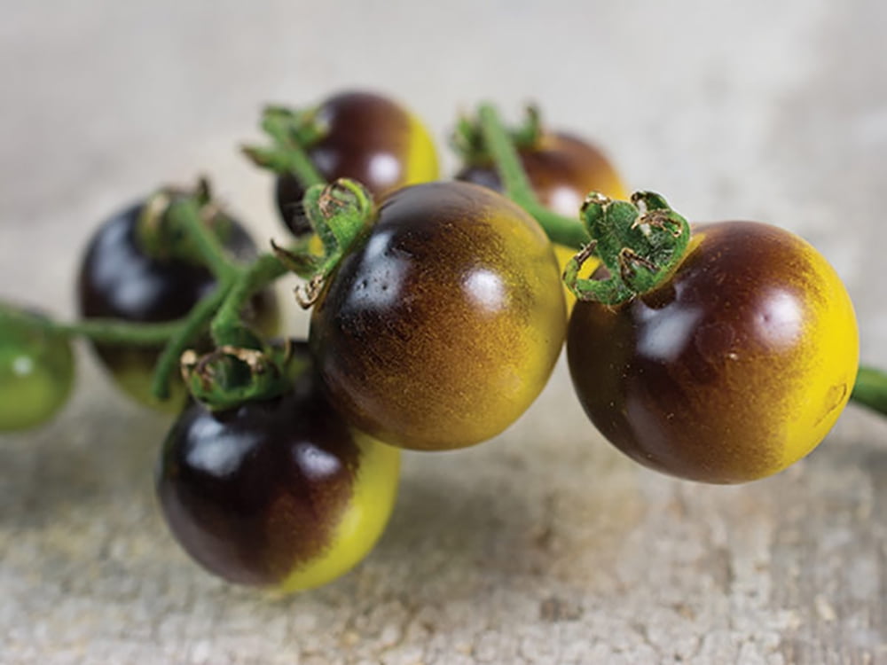 Web Cherry tomato Blue Cream Berries is a small light yellow tomato with blue shoulders. Stunning cream-amber cherries with purple-blue splashes on the.